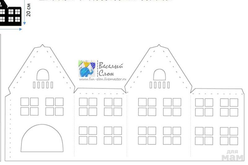(П.С. вырезаем шаблон номер 8 - нижняя часть используется как задняя стенка городка, верхняя часть используется для фона на око, если есть желание.)