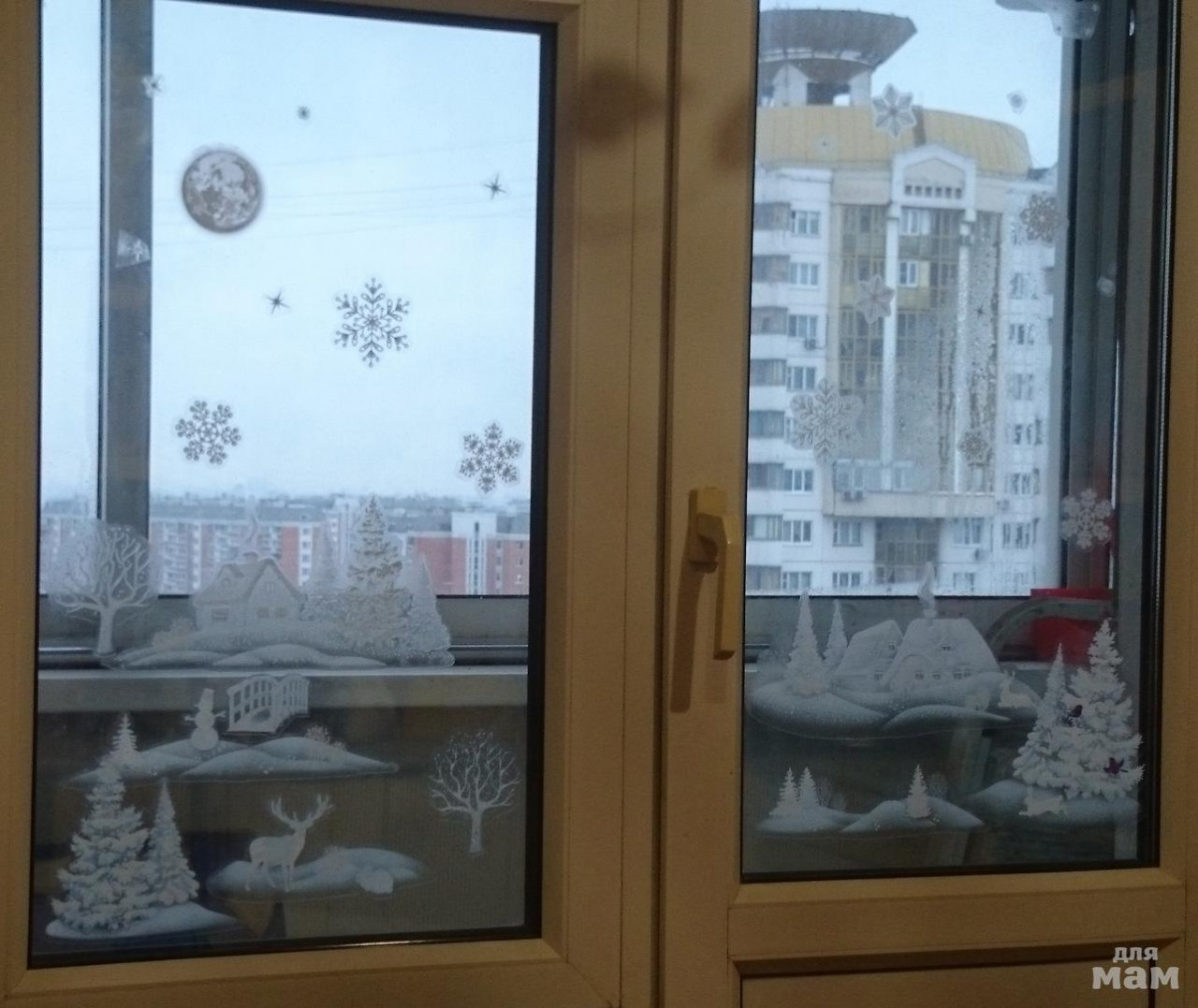И вот как выглядит на окне. Фотографировать надо, когда темно на улице, что бы было видно лучше, но сфотографировала при дневном свете сразу, как наклеила.) Поэтому видно не так хорошо, но смысл ясен