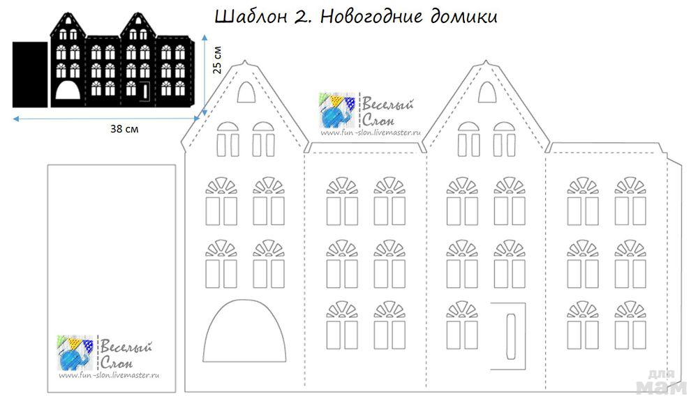 Шаблон, подогнанный под формат А4, но крыша не вошла. Подгоняла и вырезала ее сама.