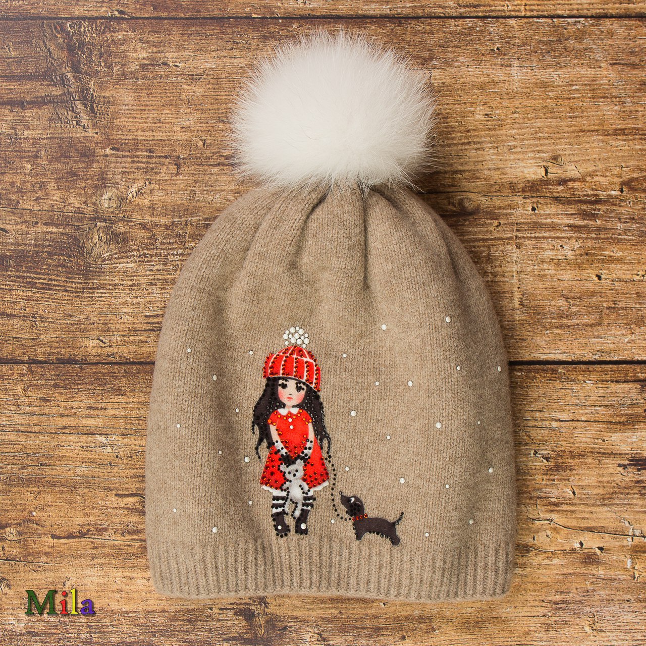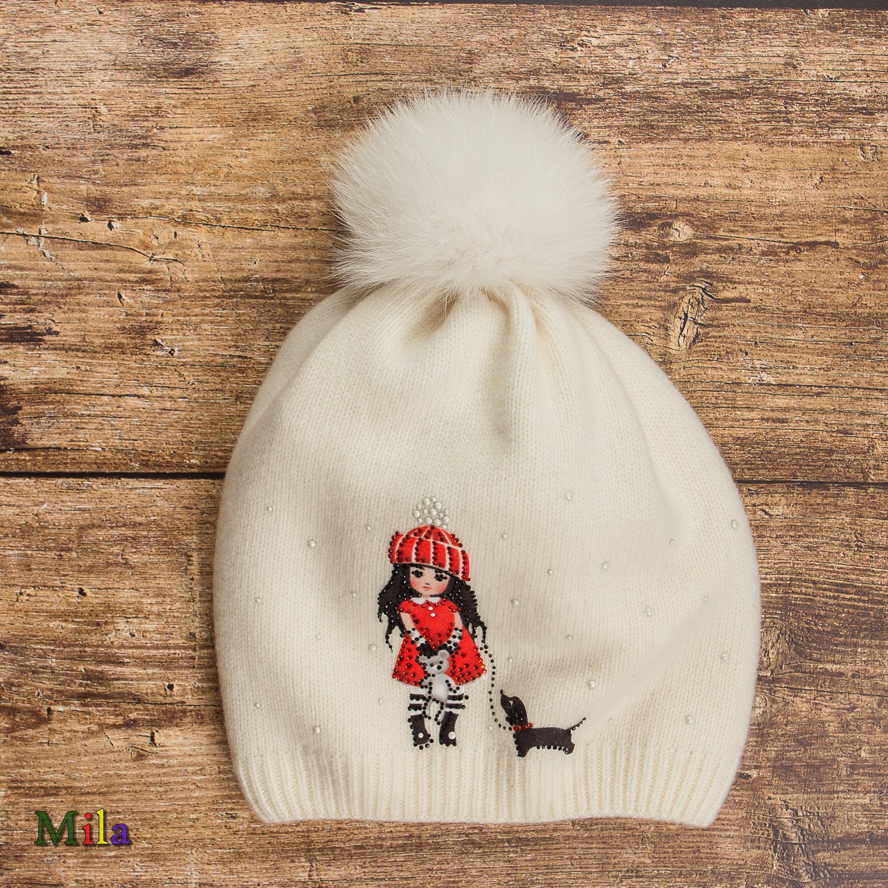 Шикарная шапочка "Девочка с собачкой "--54-56 ОГ (можно от 52 ОГ)