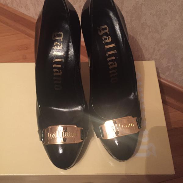 Туфли Гальяно, очень красивые! Черный лак, 37р, выходили 2 раза, следы носки только на подошве.