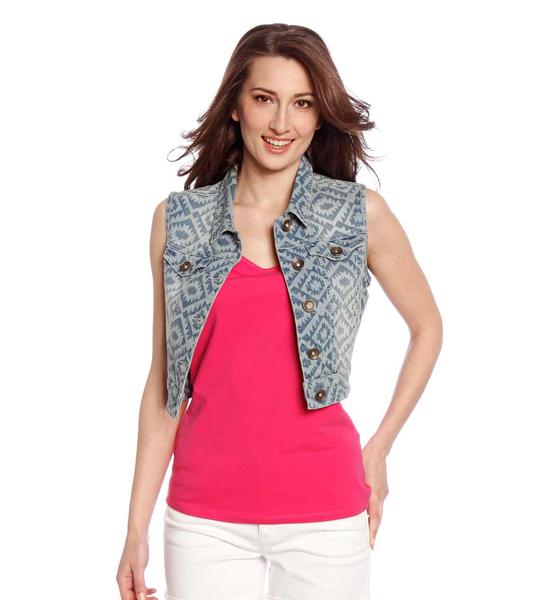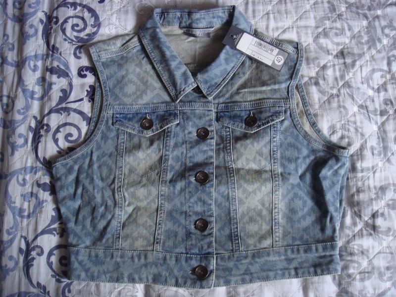 Жилет джинсовый, хлопок 98%, Фирма С&А.Размер 40 (российский 46).Замеры:Длина по спинке 42 см, плечи 38 см. Подмышки 100 см.