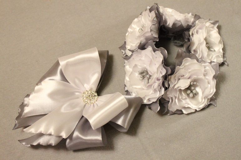 8 украшение на пучок. сделано не для школьницы, но по цвету попадает в эту тему)))