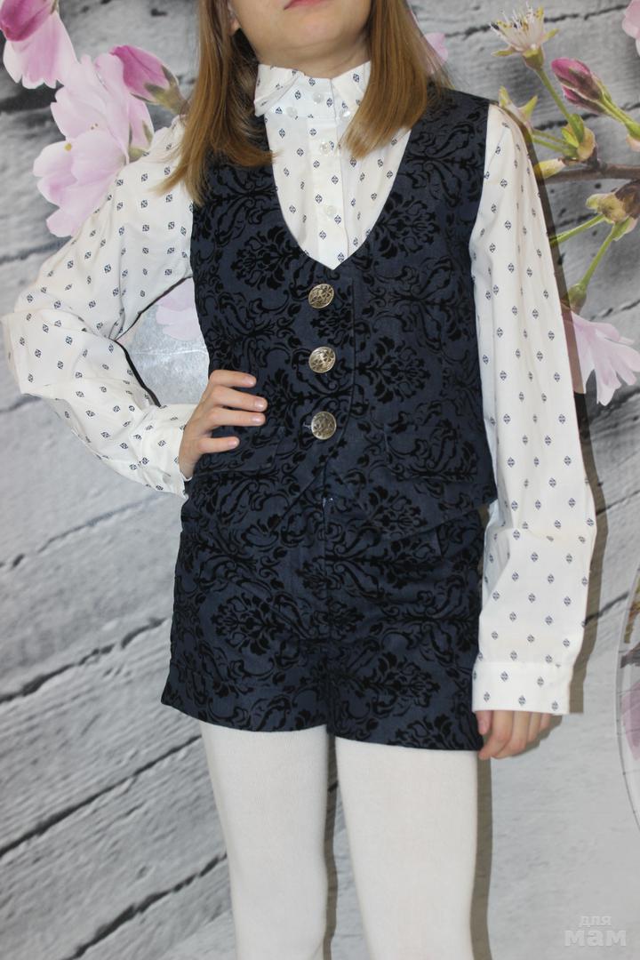 Рубашка размер 140, шорты и жилет 1082-4 размер 140, рост 136. В жилетке 134 размера трудно дышать ( так дочка сказала) )) Нужно брать на размер больше чем рост ( на рост 140 берем 146, на рост 146 берем 152)