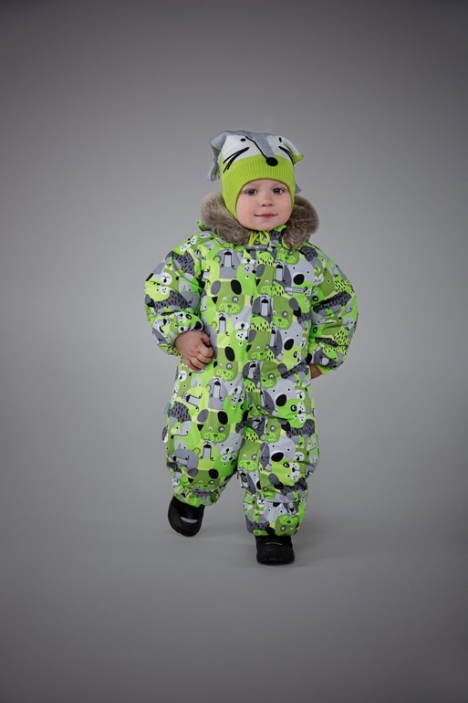 цвет 1444 зеленый принт размеры: 86 8.2.Комбинезон для мальчиков и девочек PETER арт 408 A ЦЕНА 5800 Сзади на талии резиночка. Впереди нагрудные карманы на молнии.Отстегивающийся капюшон с меховой опушкой (искусственный мех). Капюшон застегивается на липучку и подкладка выполнена из плюша.