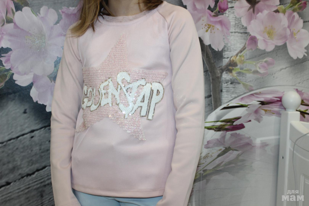 паетки 2-х сторонии.Очень красивые, горят огнем. Это было фотографировать сложнее всего, дочка все время юзала их туда сюда Трикотаж на 5+ на брюках плотный, на свитшоте тоненький, мягенький. Фото не передает всей красоты