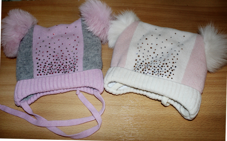 Алиса. Состав: 80% Шерсть 20% Полиамид. Размеры: 48-50 (cеро-розовая) и 52-54 (молочно-персиковая). Синтепон по всей шапочке, х/б подклад. Цена: 1100 руб.