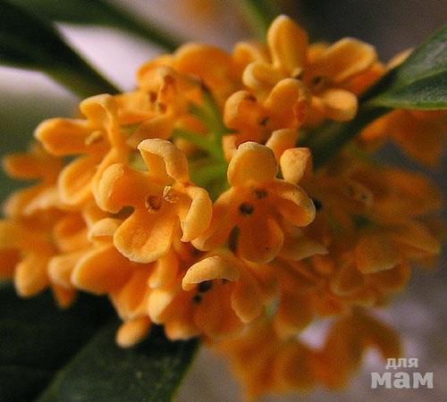 Как получают: Эфирное масло получают из свежих цветков Османтуса душистого. Производство эфирного масла османтуса занимает немало времени, так как сначала цветки должны высохнуть естественным путем. К тому же действительно стоящее эфирное масло получают из цветков только золотисто-оранжевой разновидности.