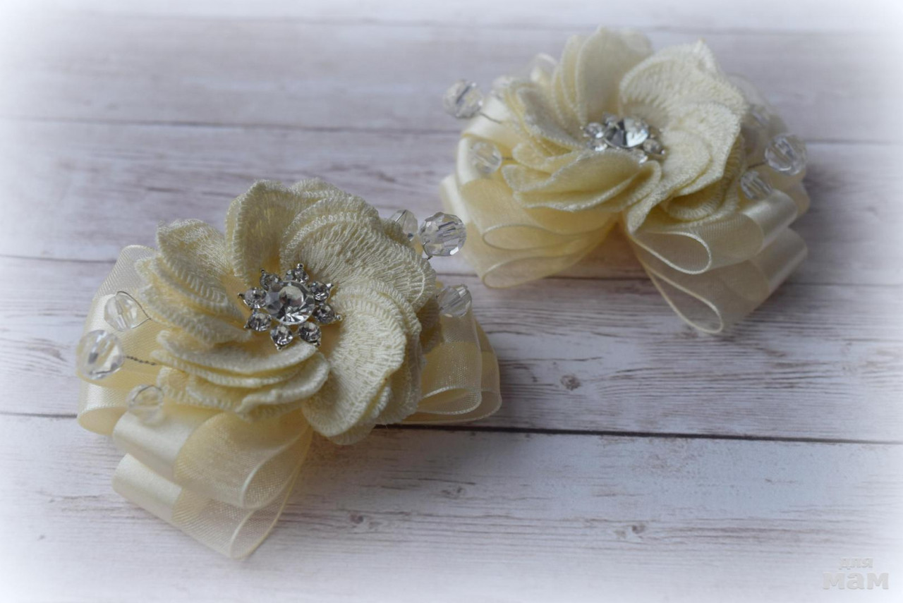 И вот такая нежнятина цвета шампань. Легкие, красивые и очень нежные. Оставила пока без основы, так как размер позволяет сделать как резиночки, так и заколочки. Малютки чуть больше 6 см.