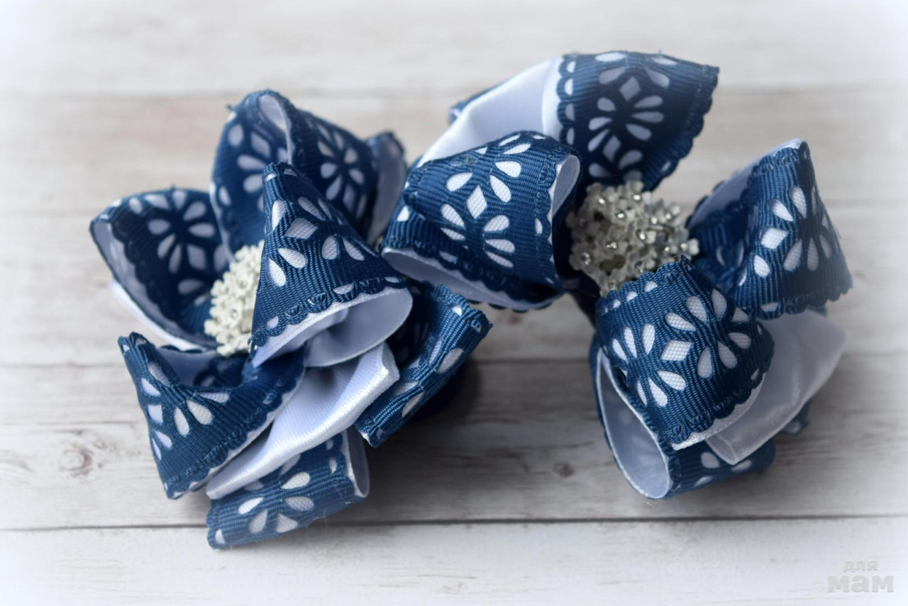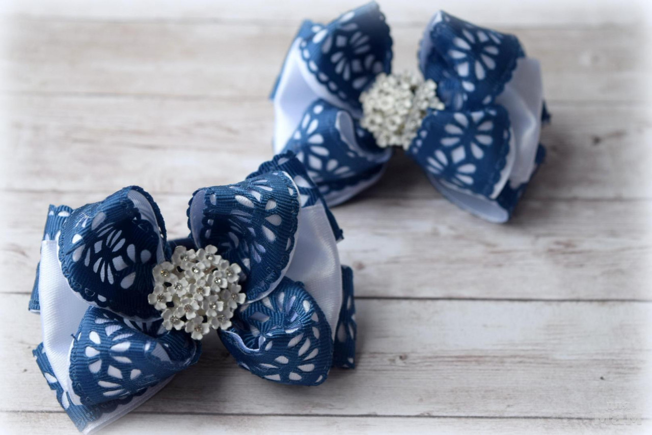 Не обделяем и синюю форму. Резные бантики, которые подойдут как для повседневной носки, так и для праздников. Размер около 8 см.