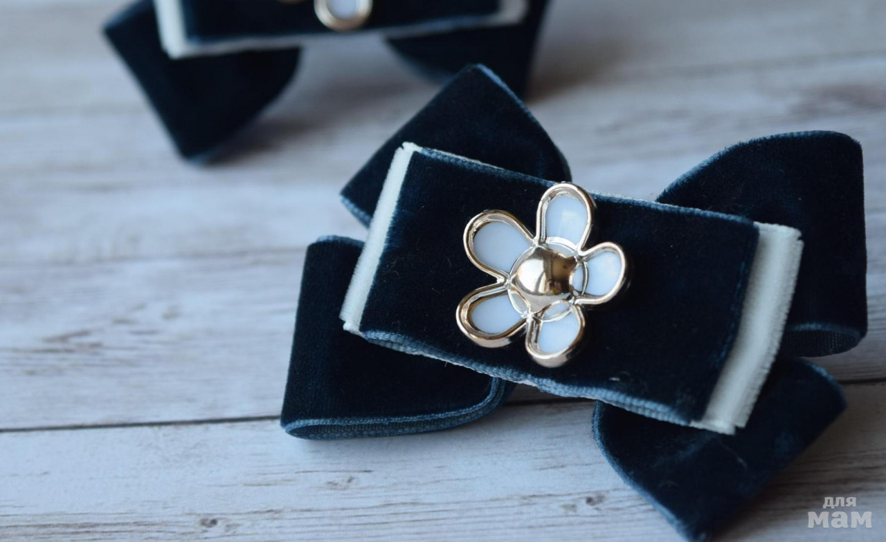 Итак. Бантики бархатные под темно-синюю форму (или любую другую одежду) Уникальное крепление цветка "намертво" посадило его к ленте. Резиночка в тон. Бантики смотрятся достойно. В НАЛИЧИИ.