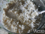 | Муку просеять, добавить разрыхлитель, перемешать. В творожную массу понемногу вмешивать мучную смесь. Замесить гладкое, не липнущее к рукам тесто. Возможно, понадобится больше или меньше муки, все зависит от творога. |