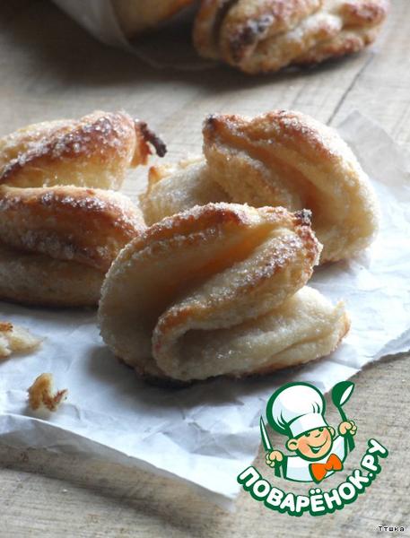 | При желании можно в сахар добавить корицу. На противень, застеленный пергаментом, выложить "ракушки", соблюдая дистанцию и отправить в разогретую до 200 градусов духовку на 20 минут. |