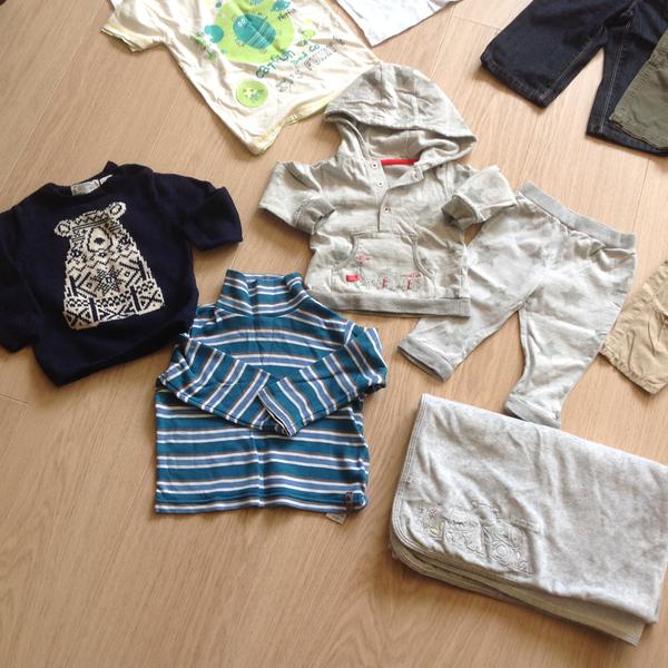 1 фото слева внизу: кофта синяя с Мишкой Zara, водолазка mothercare, серый комплект Bhs и плед mothercare