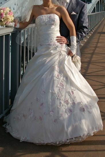 Воздушное, пышное, невероятно красивое платье цвета слоновой кости, б/у 1 раз на собственной свадьбе очень аккуратно, платье цельное, сзади шнуровка благодаря чему можно регулировать в зависимости от размера, очень красиво играют на солнышке розовые пайетки, которыми расшито платье. В подарок комплект из перчаток и сумочки расшитых в салоне специально под стиль платья. Также подъюбник на 3 кольца. Платье подшито на рост 165 см. + каблук 7-8 см., но длину можно немного отпустить. Весь комплект обошелся в 53тыс.руб.