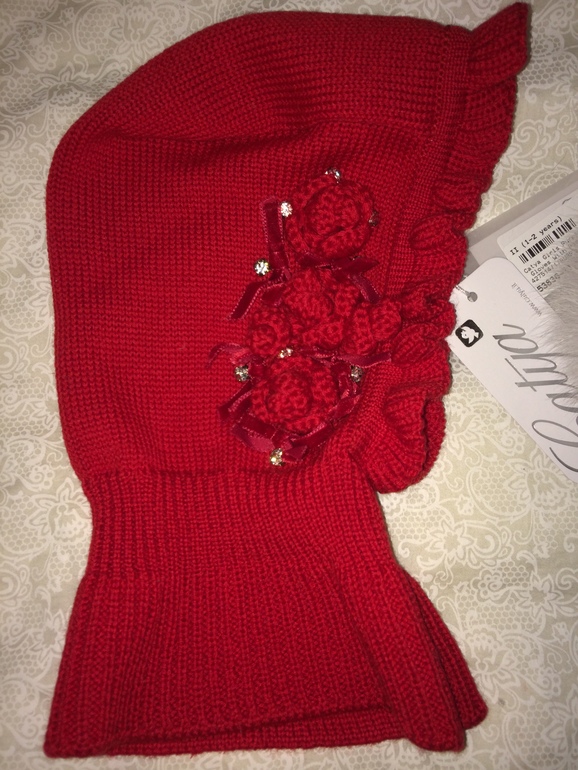 НОВАЯ. Шлем красный размер II (1-2года) шерсть 100% 2400р