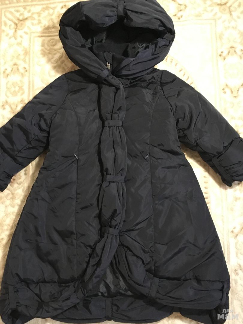 классное пальто синтепух,незаменимая вещь для праздничного выхода - прямо на платье и коглготы, длина по спинке 65см, ребенок не замерзнет) на рукавах и горловине плотная трикотажная манжета, шарфик можно не одевать. Капюшон плотно облегает и не слетает без всяких зявязок. Сзади талия подчеркнута резиночкой. Сиди очень женственно, а широкий подол охватывает даже пышние юбочки. Ну и цвет, конечно, универсальный, и красиво переливается на солнце и стирать часто не надо) Мы так и не одели, еще 3 синих пальто есть в подобном размере, но бирку сняли (чтобы вакуумный пакет не повредить), поэтому 1700р (в магазине 4500).