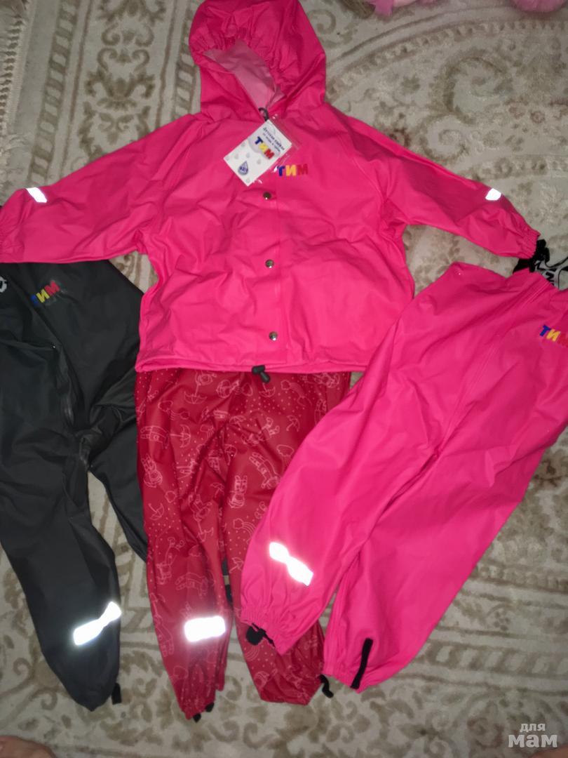 Все 92 размер, куртка 800, полукомбезы 700, серый бу пару раз 400. Мы такое одевали прямо на верхнюю одежду, даже на зимние комбезы. Но эти не понадобились..Есть еще красный комплект, рукавички нескольких цветов, как найду, выложу. Швы запаяны, светоотражатели, все на плотных резиночках, на штанинах резинки на обувь.