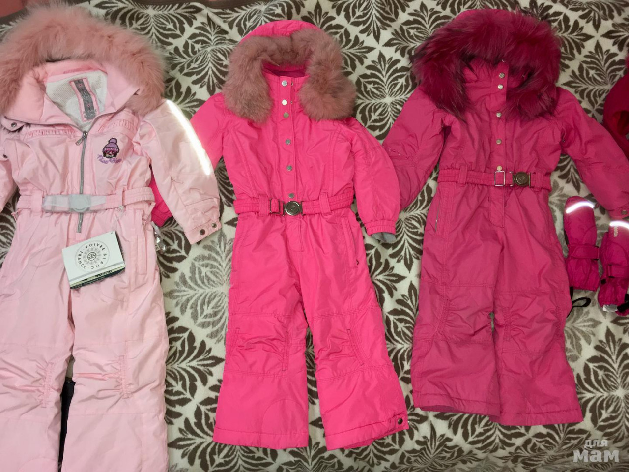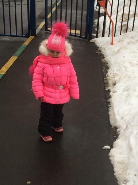 4 года, розовый. фото темное получилось, в жизни поярче. одевали прошлой зимой несколько раз, но в садик. Постиран один раз спец средством. На ребенке нюансов не видно. в подарок краги (или новые, или раз одетые, но постирала на всякий случай).