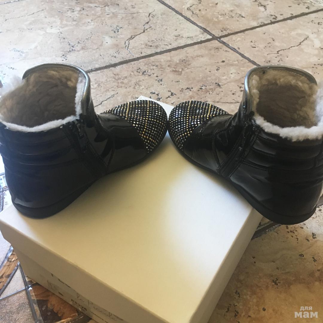 Внутри натуральный мех, снаружи натуральный лак, носили только на выход, состояние прекрасное, но не хватает несколько страз на носах (на ножке не видно)