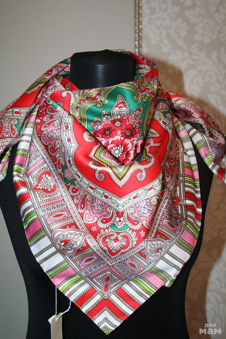 Шелковый платок Этро. Принт пейсли. Фон алый 650 р