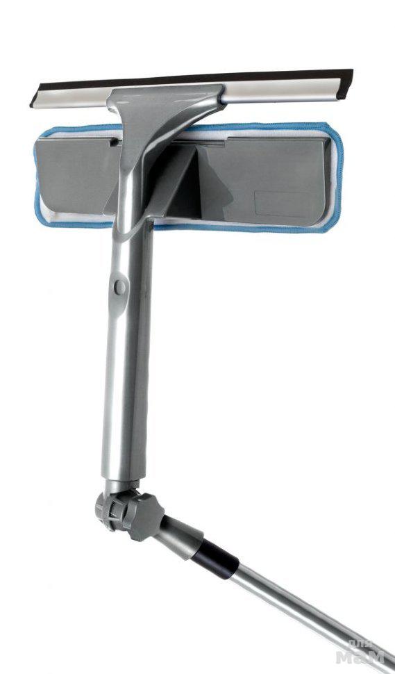 Швабра с телескопической ручкой имеет размер выдвижения от 80 до 115 см. Ручка оснащена специальным фиксатором, с помощью которого можно менять рабочий угол наклона платформы, с легкостью добираясь до самых труднодоступных мест и глухих створок.