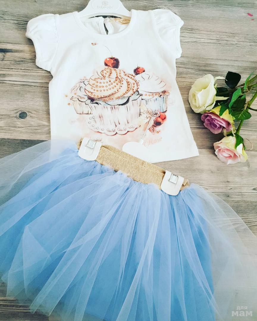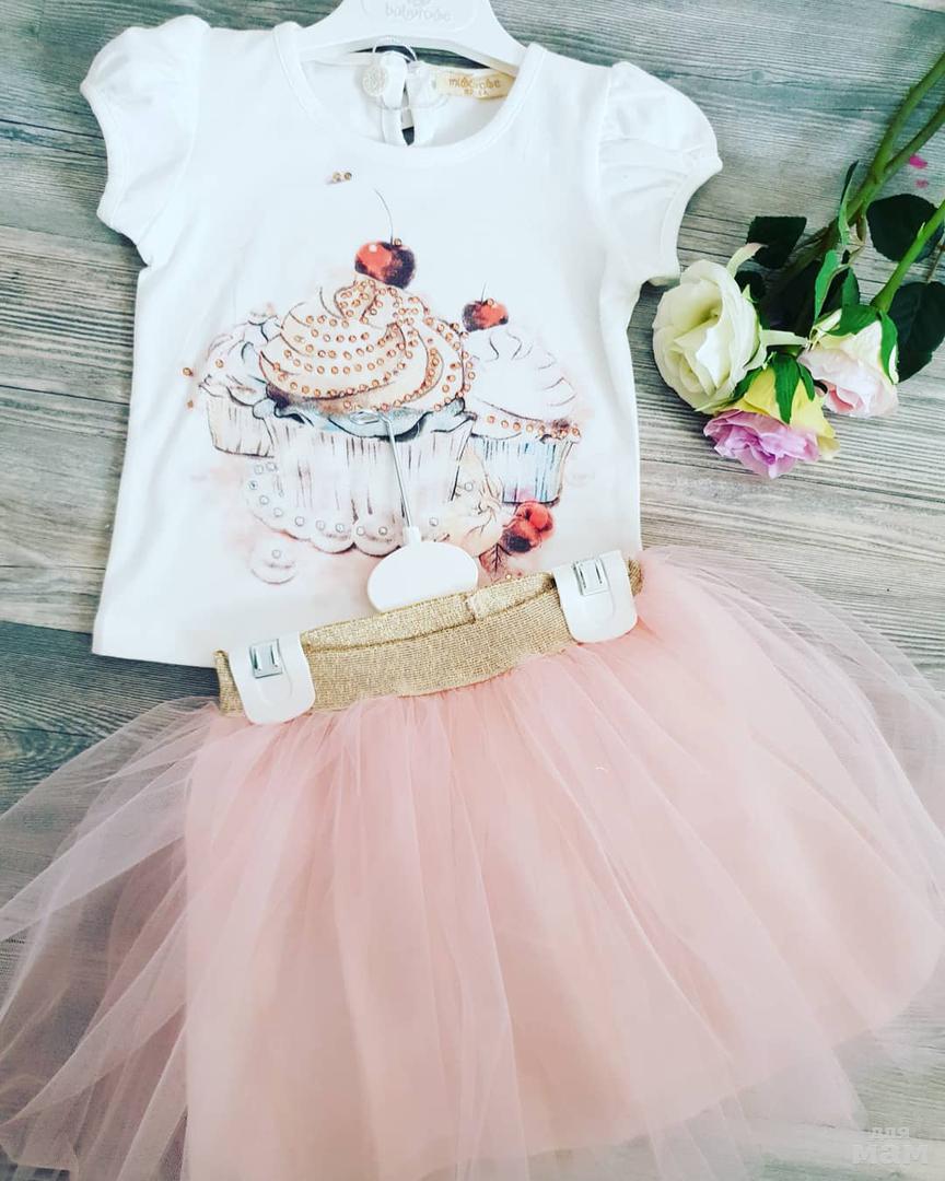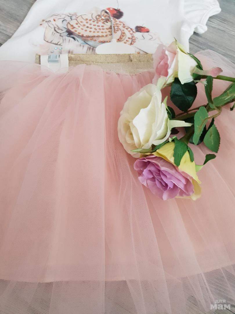 Нежный комплект юбка+футболка, цена 1600руб, размер 1-4 года. ТУРЦИЯ