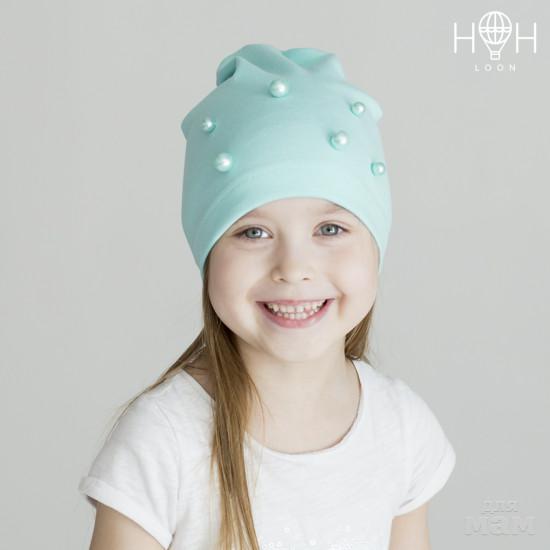21)ЛК18-144мтн Однослойная шапка со бусинами, мятный