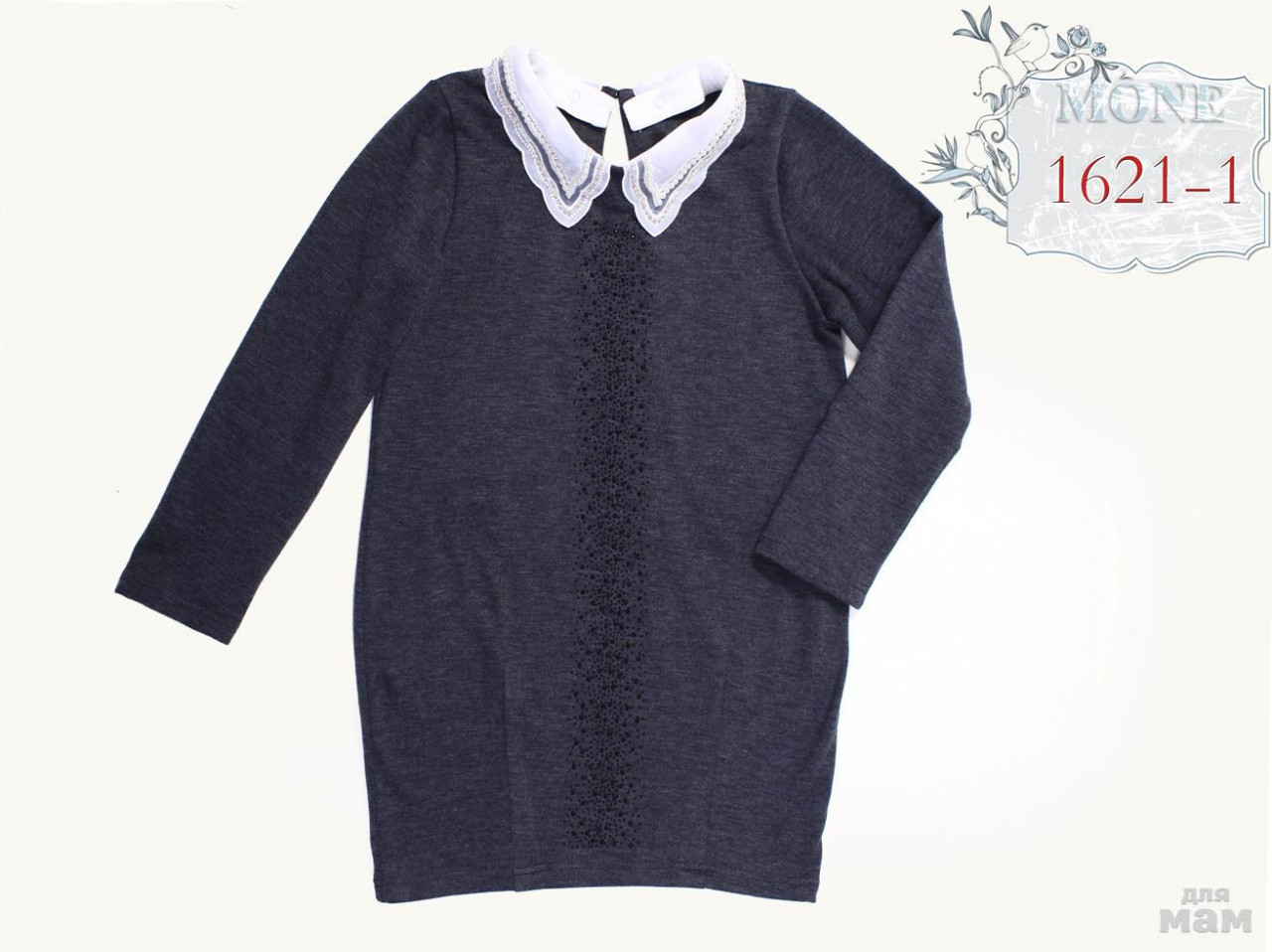 1621-1 платье трикотаж, съемный воротник, длинный рукав 122-152 серый, состав 50%вискоза 40%полиэстер 10%лайкра цена 2300 1900 1500 размер 146