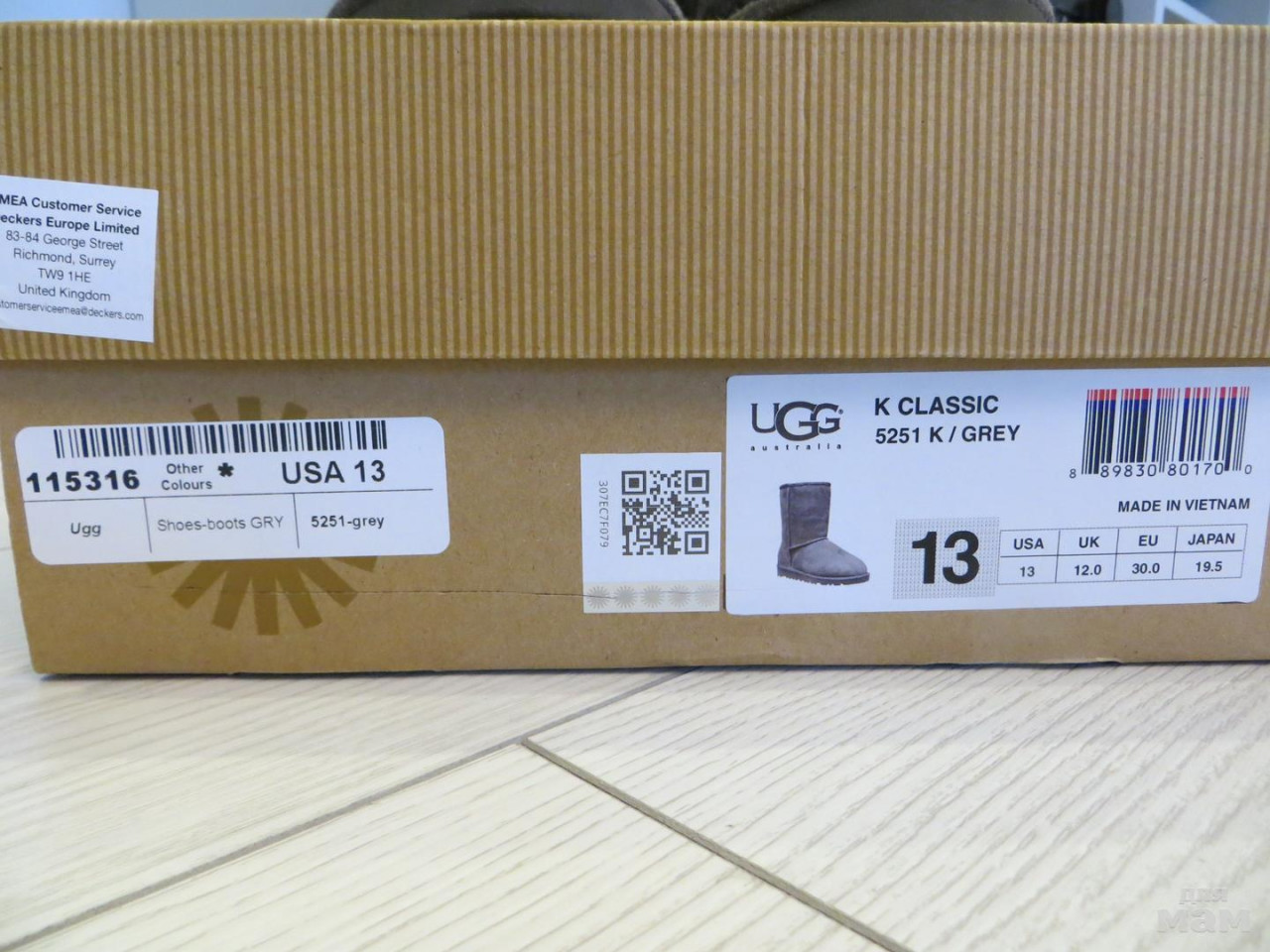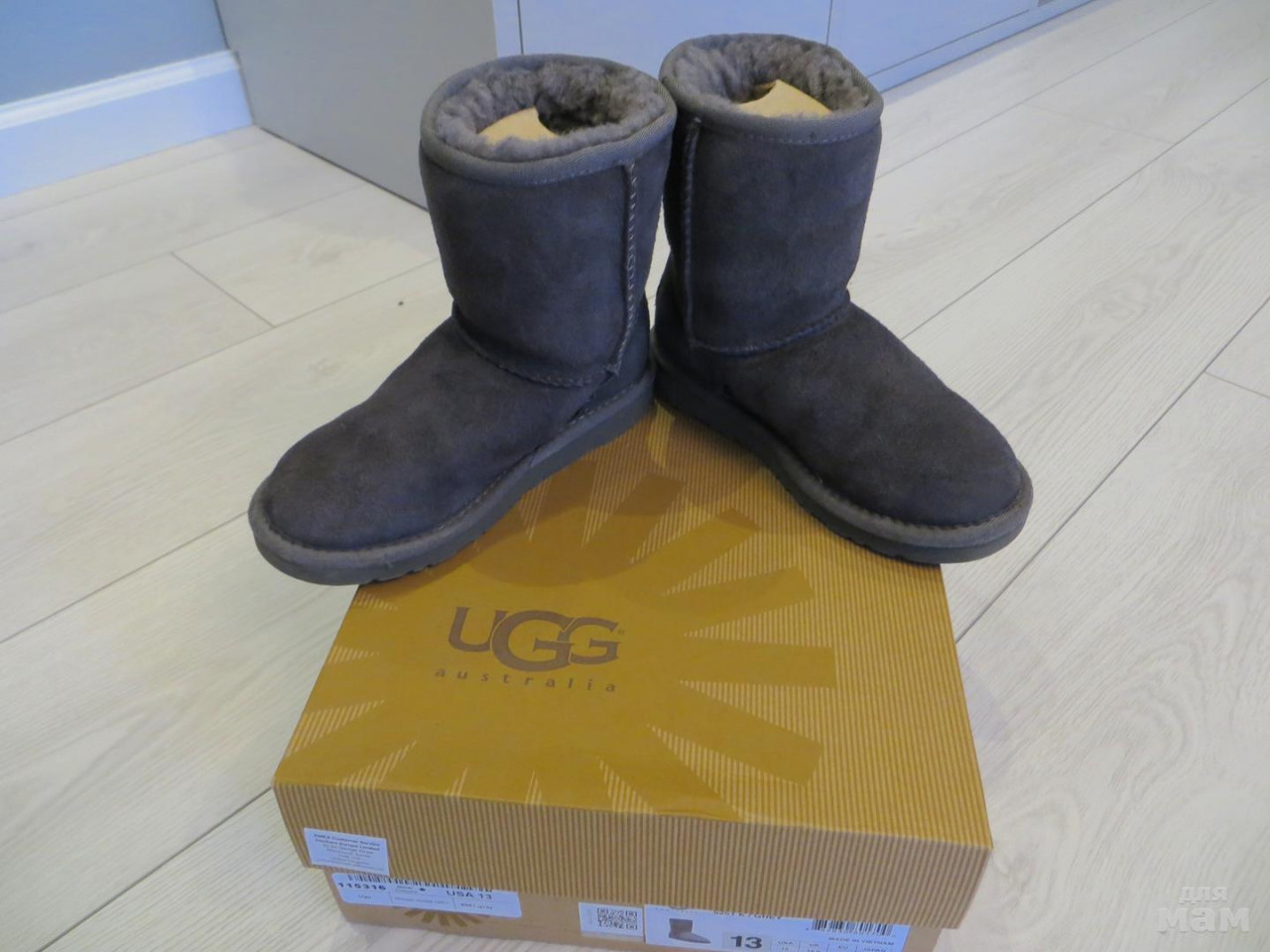 Угги, 30 размер по маркировке, длина по подошве - 22,5 см. Носились одним ребенком сезон, состояние хорошее. Очень теплые. Цвет серый. Оригинал.