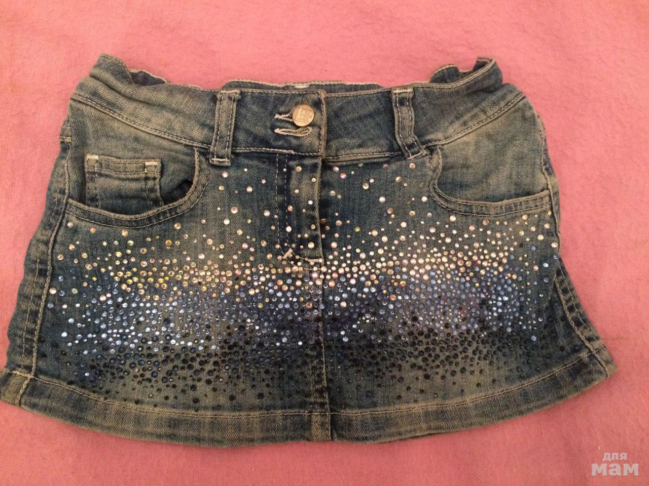 Джинсовая юбочка, вся в стразах от LB, размер 6