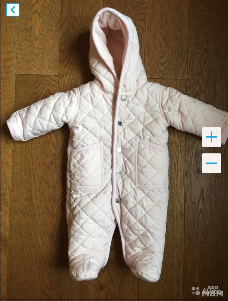 Тёплый стёганый комбинезон розового цвета на флисоврй подкладке, Ральф Лорен