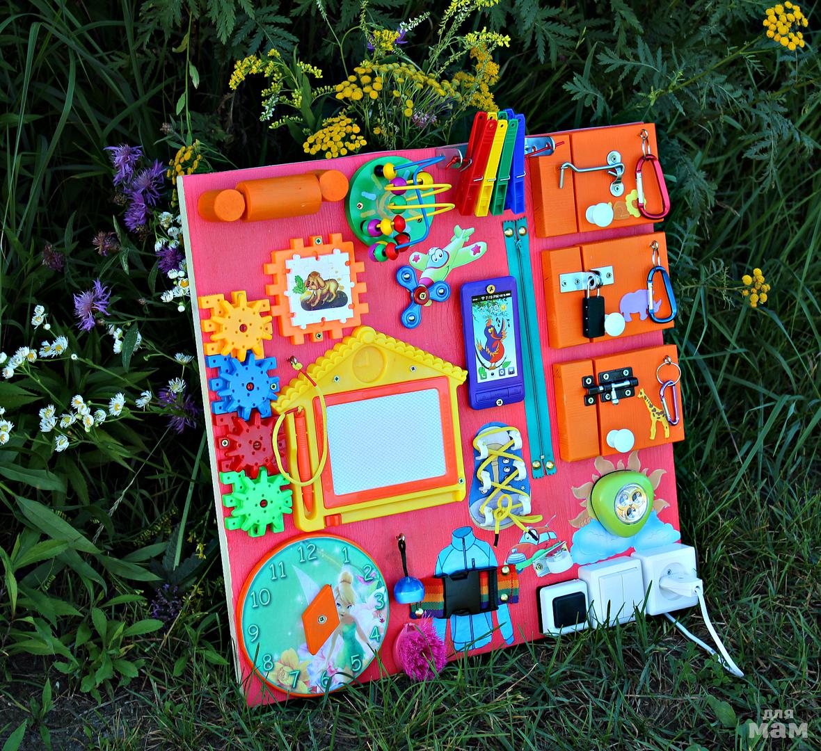 Доставка по Москве в пределах МКАД - БЕСПЛАТНО!!!! Работа готовая. В наличии. Размер 50*50 см. Основание НЕ фанера, а деревянная доска шириной 2 см. Игрушка для развития малышей. Рекомендуется для возраста от 8 мес. до 3-х лет. Развивает мелкую моторику, фантазию и логическое мышление. При изготовлении бизиборда использована акриловая краска на водной основе. Данная краска является безопасной для здоровья ребенка и используется при изготовлении деревянных игрушек.