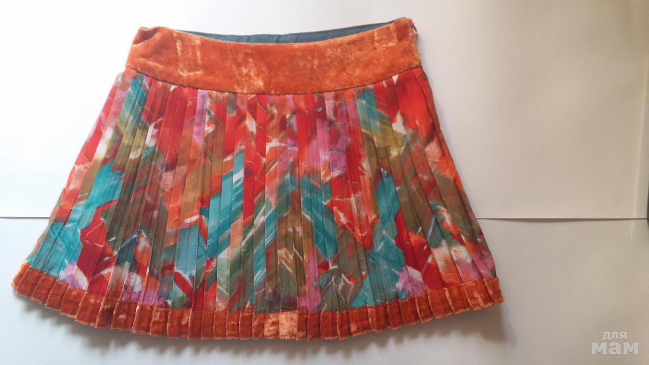 Новая плиссированная юбка Quis Quis р.6, на подкладке, в поясе утяжки, отделка бархат. к юбке есть оранжевая бархатная водолазка и ярко-розовый топ с камнями( фото по запросу). Замеры: талия 58см, длина 31см.
