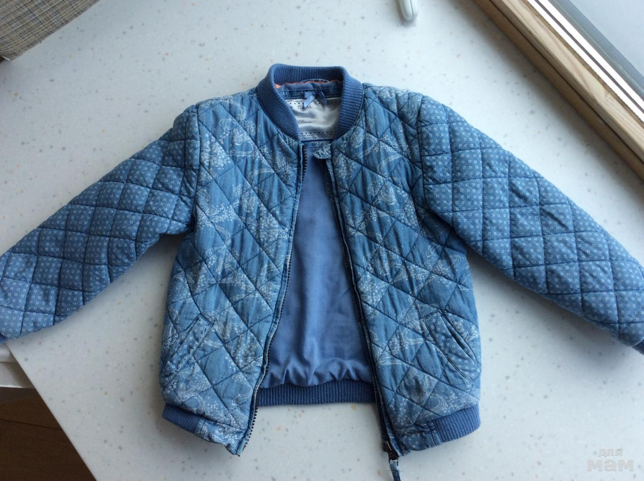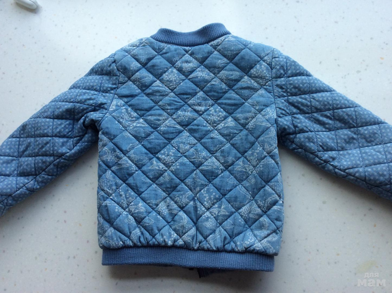 Продам б/у Бомбер утеплённый с рисунком. Mothercare.Размеры: 3-4 года (104), ДИ по спинке 42, от плеча до низа 40, ВР 30, ПОГ 33Верх 100% хлопок, подкладка 80% хлопок, 20 %ПЭ.Идёт на позднюю весну и Холодное лето.
