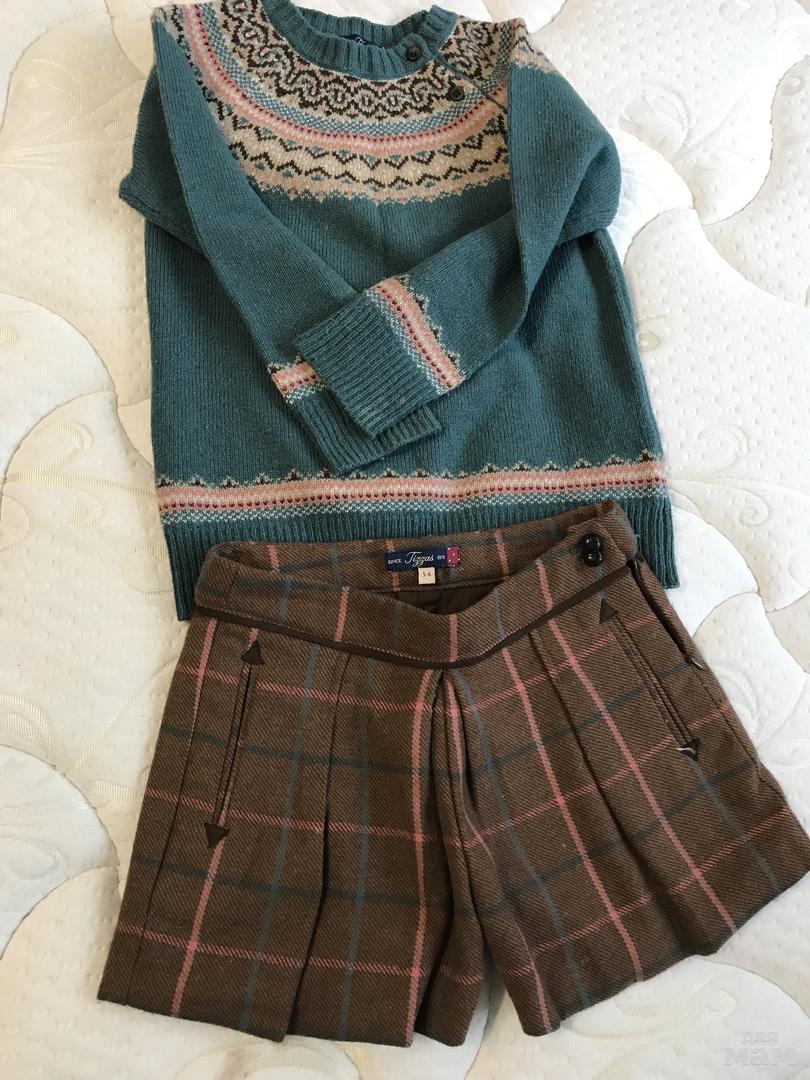 Комплект испанской фирмы, на 5-6 лет. Шерсть. На рукаве блик. Никаких ньюансов, состояние нового. Шорты с утяжками- 2000, зима.