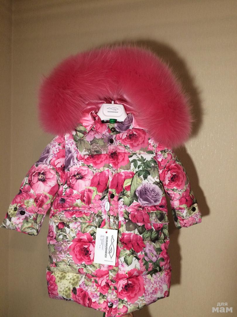В продаже пальто для маленькой красотки! Manudieci, размер 3А. Шикарная опушка, логотип из страз.