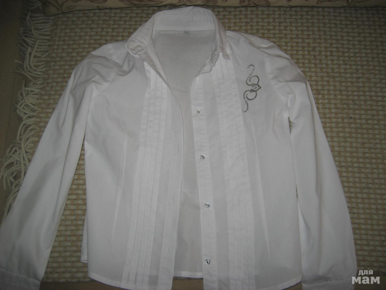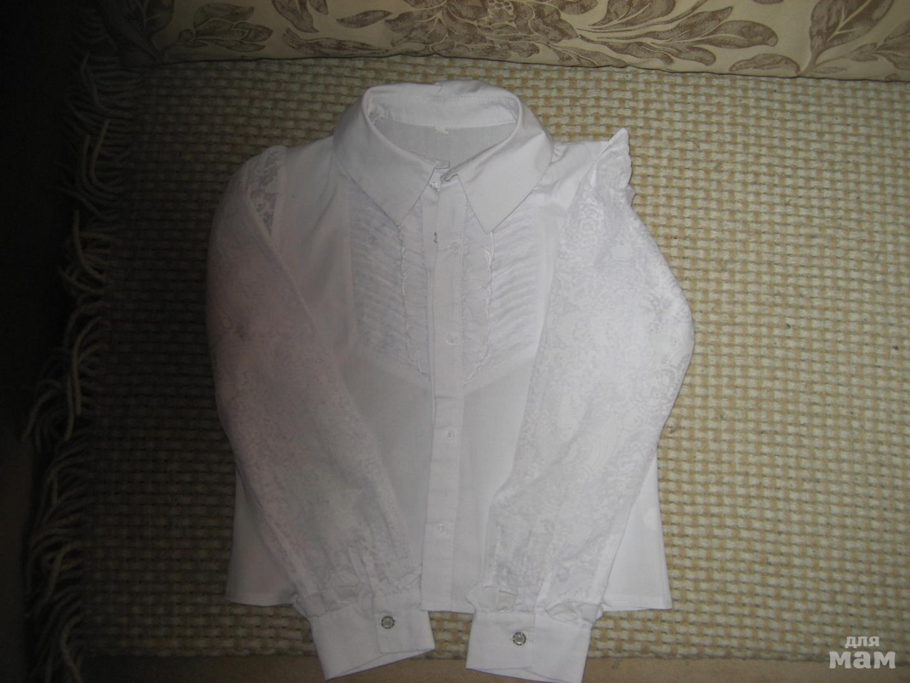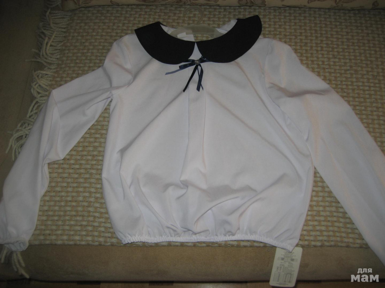 8 Блузка Mikrus на 140 см, хлопок 95%, эластан 5%, на воротнике -вышивка, рукав мсожно завернуть и застегнуть на пуговичку.Не одевали (забыли)) если только 1 раз ) 450 руб