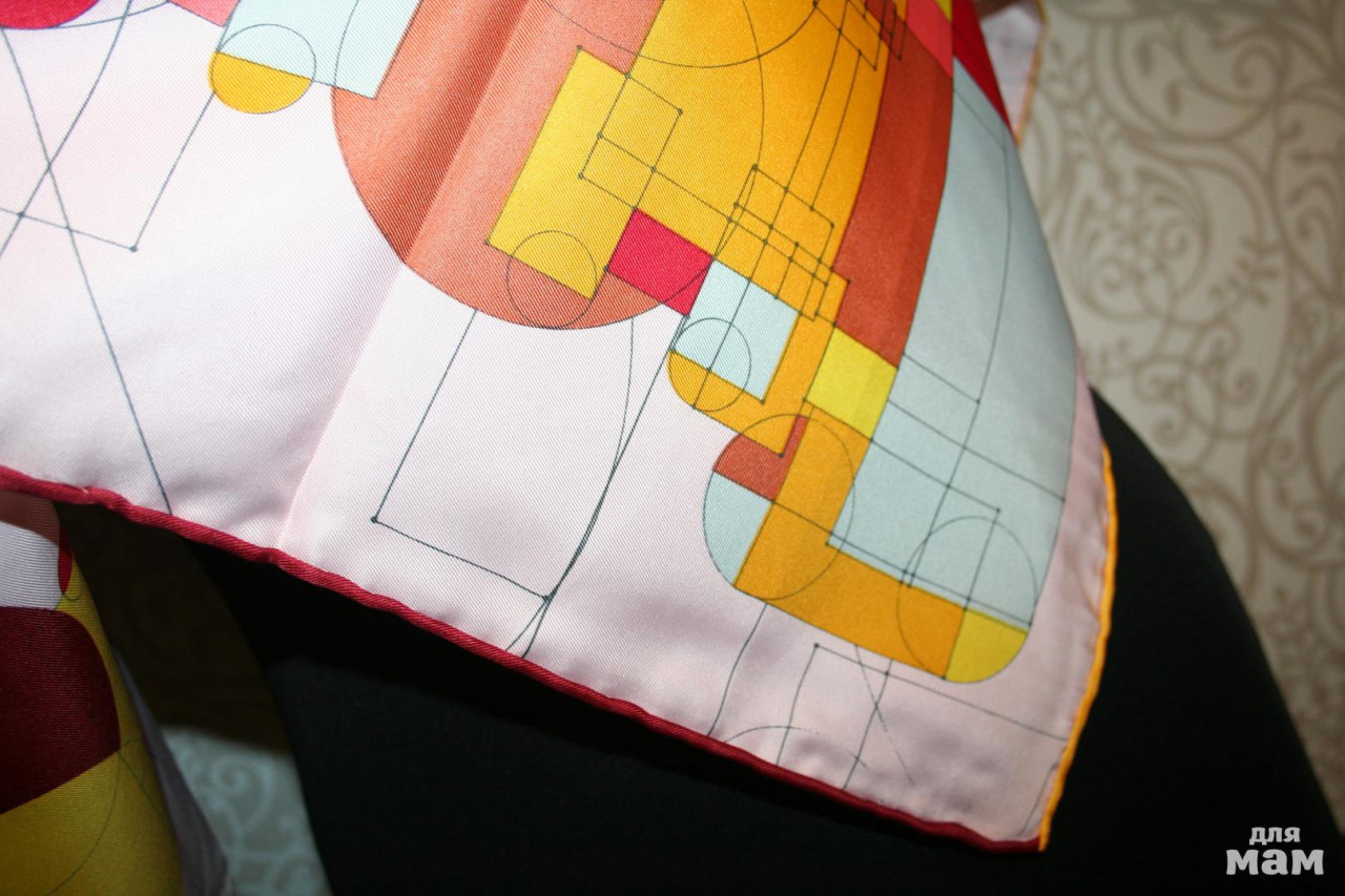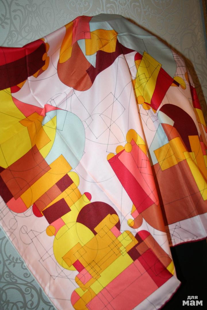 Шелковый платок Геометрические фигуры. Ручной подгиб края. Саржевый шелк. Франция. 750 р