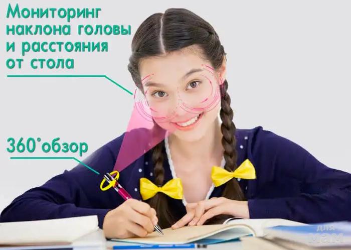 Он отслеживает наклон, контролируя положение вокруг на 360 градусов. При неправильном сидении процессор подает сигнал, наконечник убирает стержень внутрь корпуса, не дает писать. Как только положение спины возвращается в нужную позицию, стержень появляется. На корпусе имеется выделенная площадка для расположения пальцев. Она разработана так, чтобы хват был комфортным и удобным для детей: особый материал, сечения поверхности. При перекладывании пальцев, попытках поставить руку неправильно, стержень будет реагировать, мешать писать.