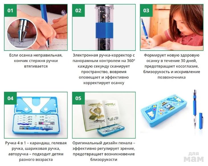 Полезные привычки формируются в детстве. Одна из них – правильная осанка. Умение держать свое тело в нужном положении – сложный процесс, от него зависит состояние здоровья и общее самочувствие человека. Помощь требуется начинать оказывать уже в детстве: с рождения до взросления. Ручка корректор-осанки – новая разработка ученых, позволяющая избежать многочисленные проблемы простым методом обучения правильному положению тела во время письма. Привычка красиво сидеть станет залогом крепкого здоровья.