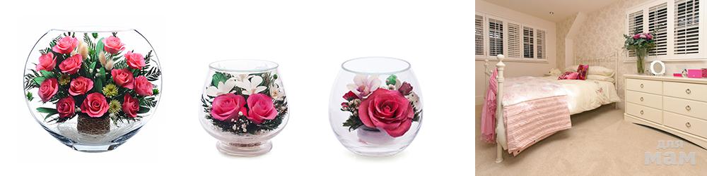 Мы предлагаем вашему вниманию несколько коллекций, в которые входят композиции различного стиля и цветовой палитры. Страстные и нежные, яркие и утонченные, - здесь вы найдете композиции, которые идеально впишутся даже в самый капризный интерьер. Дарите натуральные цветы в стекле, дарите неувядающее настроение! Если вы хотите купить запоминающийся подарок, яркий и неповторимый, то цветы в стекле - идеальное решение! Выбирайте из нашего каталога вариант или варианты и заказывайте. Наш магазин подарков в Москве всегда готов удовлетворить любой запрос и порадовать вас оригинальными цветами в стекле. Благодаря использованию специальной тайской технологии живые «цветы в стекле» могут храниться до пяти лет.Ассортимент товаров в магазинах стал настолько велик, что можно найти все, что душе угодно. Однако приобрести в подарок нечто действительно оригинальное совсем непросто. Один из вариантов решения данной проблемы предложили тайские умельцы, разработав уникальную технологию изготовления цветочных композиций, запаянных в стекло.«Композиции стоят недешево, потому что это ручная работа, живые цветы, да и технология изготовления дорогаяю . Но такие букеты не вянут до пяти лет». Тайцы не разглашают деталей производства, но сам процесс выглядит примерно так: из свежесрезанного цветка «изымают» всю влагу, потом его бальзамируют и помещают в вакуум.