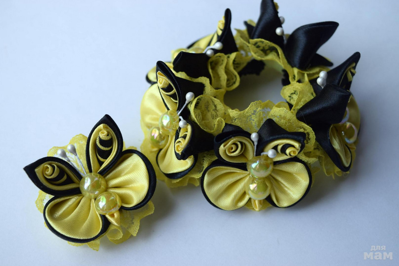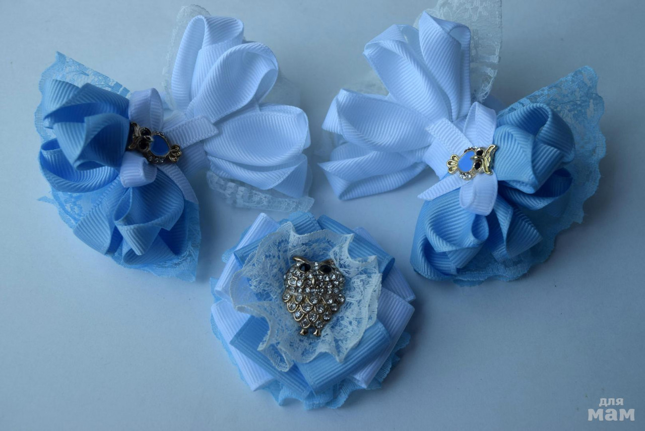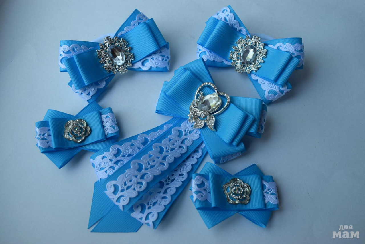 А тут под голубые блузочки в школу еще один набор - резиночки и маленькая брошь