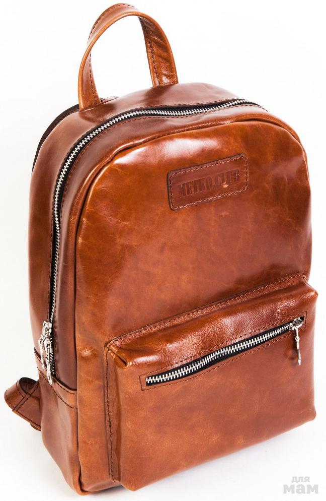 Рюкзак из натуральной кожи ТМ Metko Club, производство Россия. Фурнитура - металл под серебро. Без подкладки. Внутри рюкзака одно большое отделение и 1 карман под телефон и ручку. Рюкзак сверху закрыт на застёжку молнию. Спереди и сбоку 2 функциональных кармана на молнии. Рюкзак оснащён двумя регулируемыми по длине ремешками для ношения сзади на плечах.