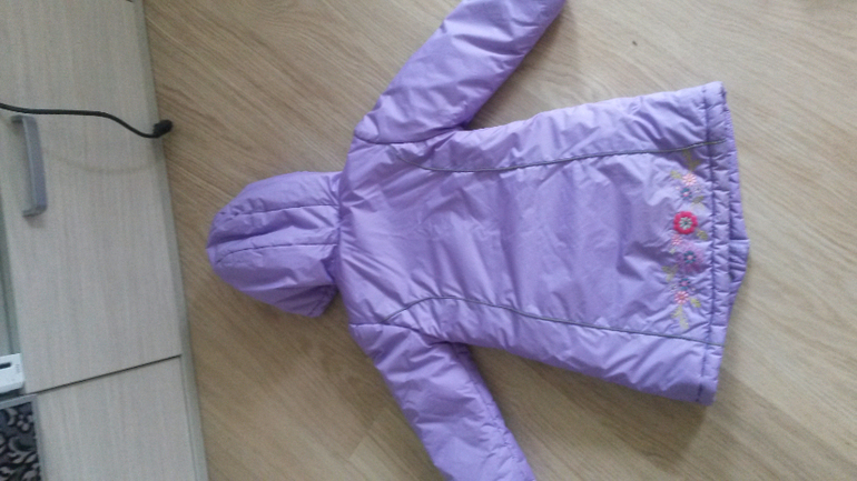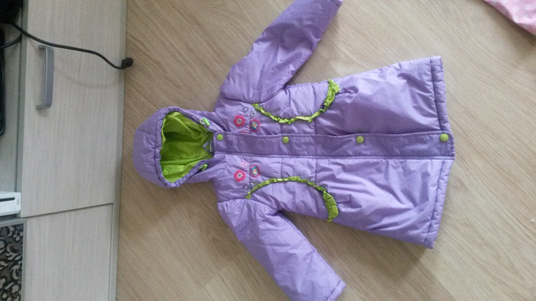 Отличное пальто на холодную осень и весну. Хорошо утеплено синтепоном. На 3 года. Есть совсем небольшой нюанс на спинке в виде малозаметного пятнышка.
