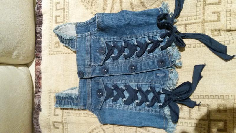 Моднявая джинсовая жилетка для маленьких модниц ) Размер 3 года, по мне лучше от двух. Состояние отличное.