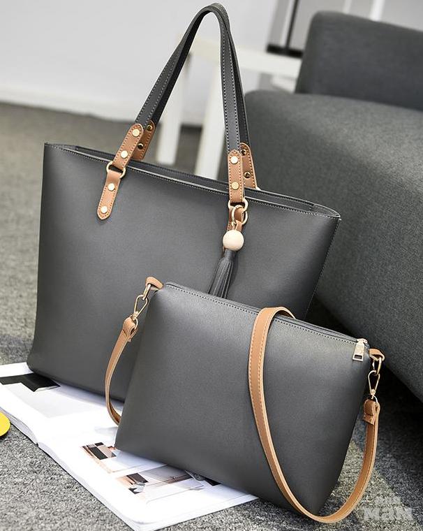 Большая модная сумка 2 в 1 из экокожи. Фурнитура - металл под золото. Без подкладки. Сумка сверху закрыта на молнию и дополнена двумя удобными ручками для ношения на плече. Внутри 1 большое отделение и маленькая сумка на молнии. Сумка оснащена съёмным длинным регулируемым плечевым ремнём.