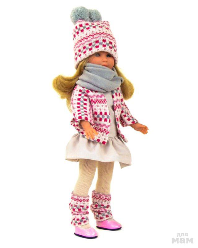 Кукла Селия - самая красивая и новогодняя куколка зимней коллекции ASI 2017 года! Узорчатый вязанный комплект одежды включает кофточку, шапочку с помпонами, широкий шарф и гетры. На кукле надето платье, идеально сочетающееся с розово-серой гаммой текстиля.