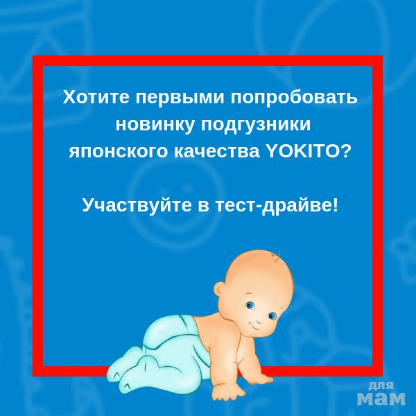 Дорогие мамы и папы!Интернет-магазин Yokito-piter.ru приглашает принять участие в тест-драйве подгузников японского качества Yokito Premium.