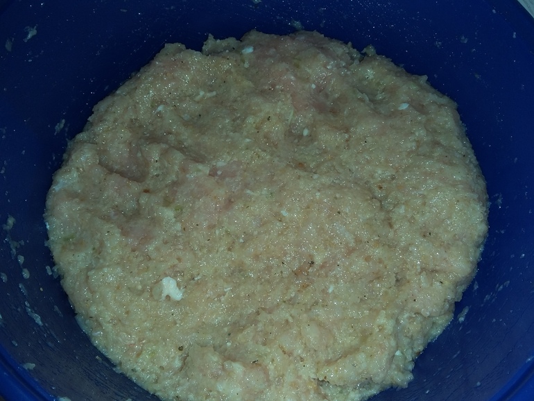 Смолоть курицу и 1 большую луковицу: